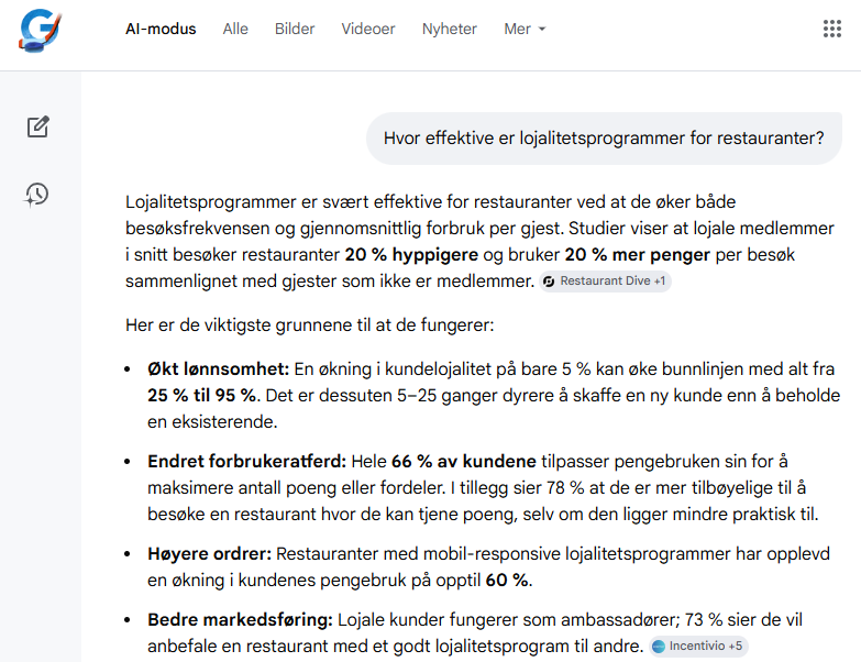 Lojalitetsprogrammer er svært effektive for restauranter ved at de øker både besøksfrekvensen og gjennomsnittlig forbruk per gjest. Studier